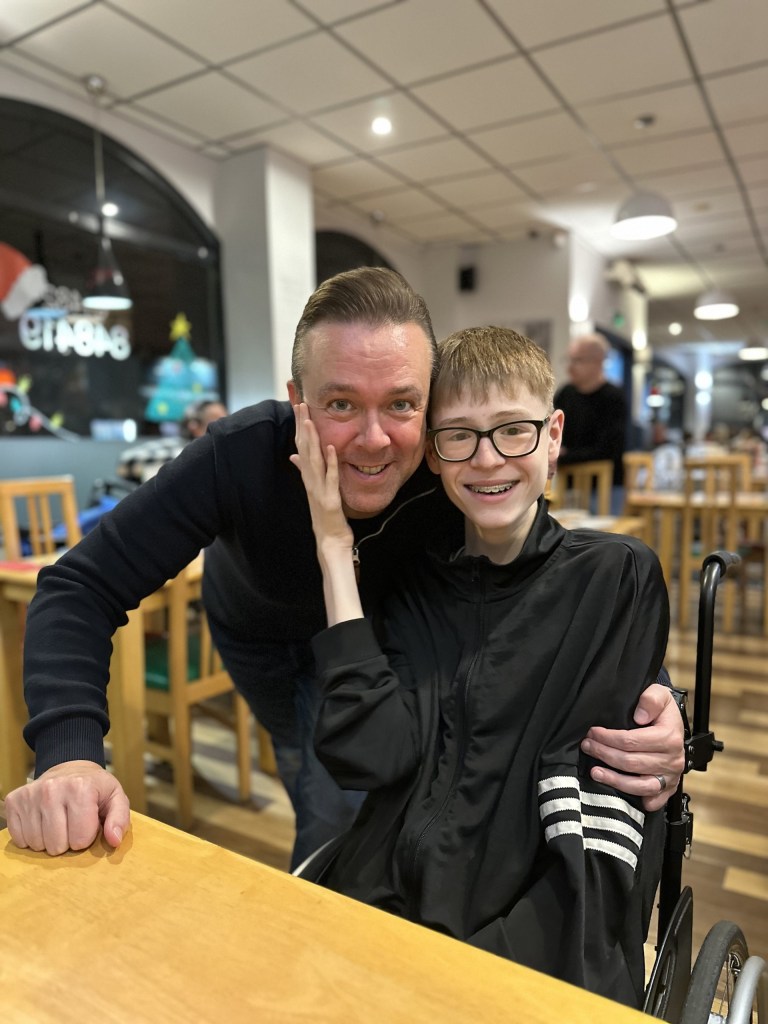 T needs to do his physio. If he stops, he won’t be able to weight bear at all on his legs, meaning that we are in a whole new realm of hoists and assisted, well, assisted everything. When T arrived home from school, we had a long and very emotional chat about him going on strike. What it boiled down to, was that he didn’t want to be different. He just wanted to be the same as his friends. He has become extremely self conscious about things which draw attention to his disability. He doesn’t like using his postural support chair in his classes, as the class have to move to get it into the room. He doesn’t want to do physio, because he has to leave in the middle of a lesson, making him stand out.